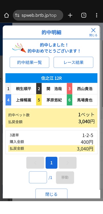 まず、最終12R(2025ファイナル)はいちおう当たりました。300円を2000円にする戦いをしています。