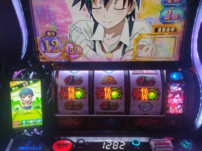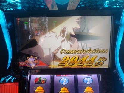 これが伸びる。スイカとチャンス目がいい感じで絡まって気が付けば手元表示500枚近くで画面表示が1000枚オーバー。チャンスが来ました。